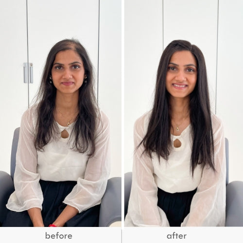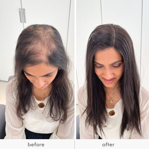 Upon receiving your topper, we suggest taking a few moments to straighten the base by gently applying pressure to the roots. This step will help to smooth out any bumps that may have occurred during packaging, ensuring a more natural fit. With continued wear, the topper will begin to conform to the shape of your head and sit more seamlessly. Don't worry if it feels a bit unfamiliar at first - our toppers are designed to provide a comfortable, natural-looking solution to hair thinning, and with a bit of patience and adjustment, you'll be amazed at how great your hair looks and feels.